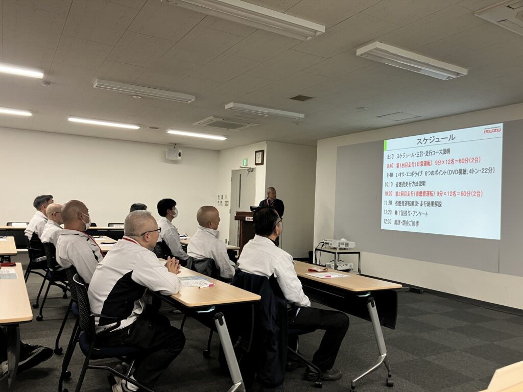 いすゞ自動車首都圏株式会社 東京ベイ中央支店・東京サービスセンター・移動サポート部の皆さまのご協力により、エコドライブ講習会を開催しました。